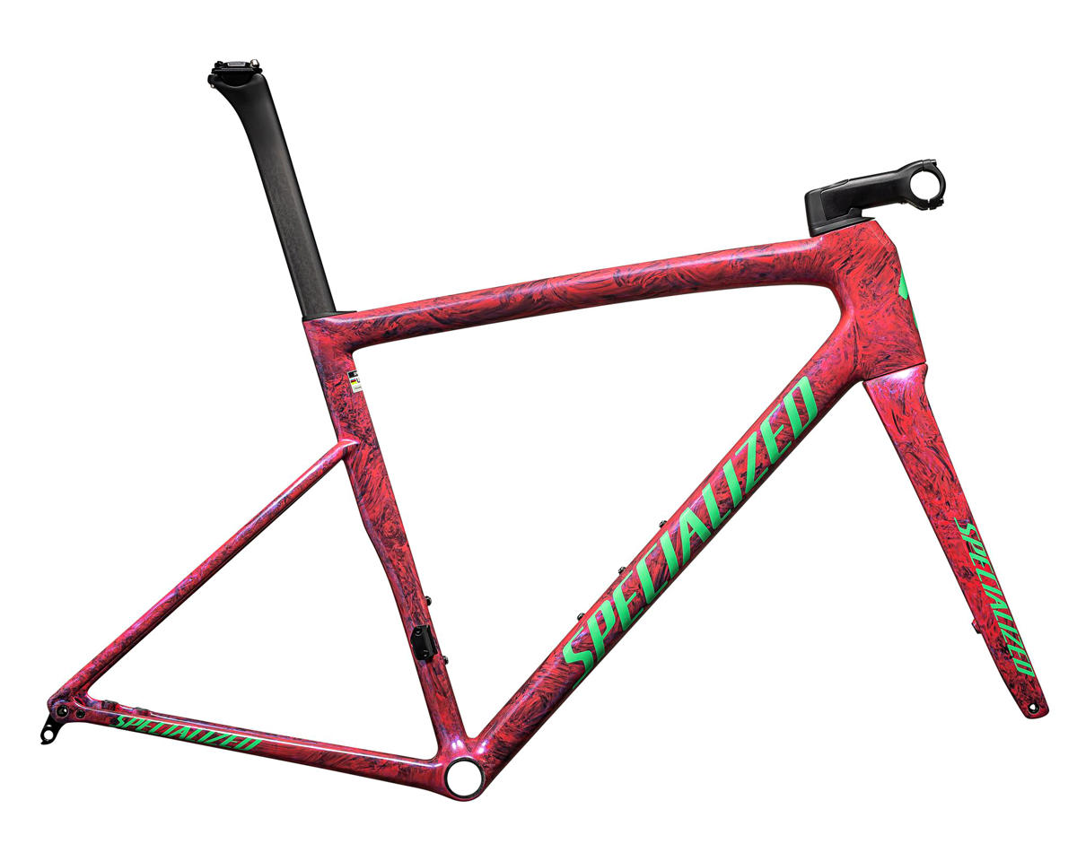 Loading... Please wait...The Specialized Tarmac SL8 Frameset is designed for speed across any ride profile. Building upon the SL7's "one bike to rule them all" mantra, the Tarmac SL8 takes this all-around winning design and shaves weight while prioritizing aerodynamics and stiffness. This 1.69 kg (size 56cm) frame is made from FACT 10r Carbon. While slightly heavier than its S-Works counterpart (around 320g heavier), the SL8 frame provides the same level of compliance as its big sibling. The "Speed Sniffer" front design sets the headtube back away from the bike's leading edge, allowing for a sharper, lower drag shape. Regarding its stiffness-to-weight ratio, the SL8 provides a 33% gain over the SL7, making this bike equally suitable for all-out sprints or hillclimb finishes. The SL8 is a winning formula designed to take on the most competitive races in the world.